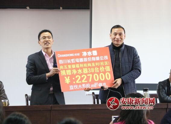 安康新聞網(wǎng)訊(通訊員 熊鋒)12月5日下午,長(zhǎng)虹日電科技公司安康銷售公司代表向漢濱區(qū)五里鎮(zhèn)敬老院及村(社區(qū))捐贈(zèng)38臺(tái)凈水機(jī),價(jià)值22萬(wàn)余元。據(jù)悉,此次捐贈(zèng)是……