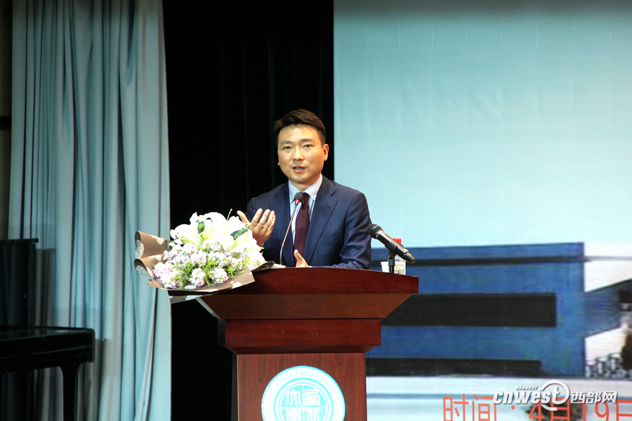 康輝向現場學生講述自己是如何進入中央電視臺的。