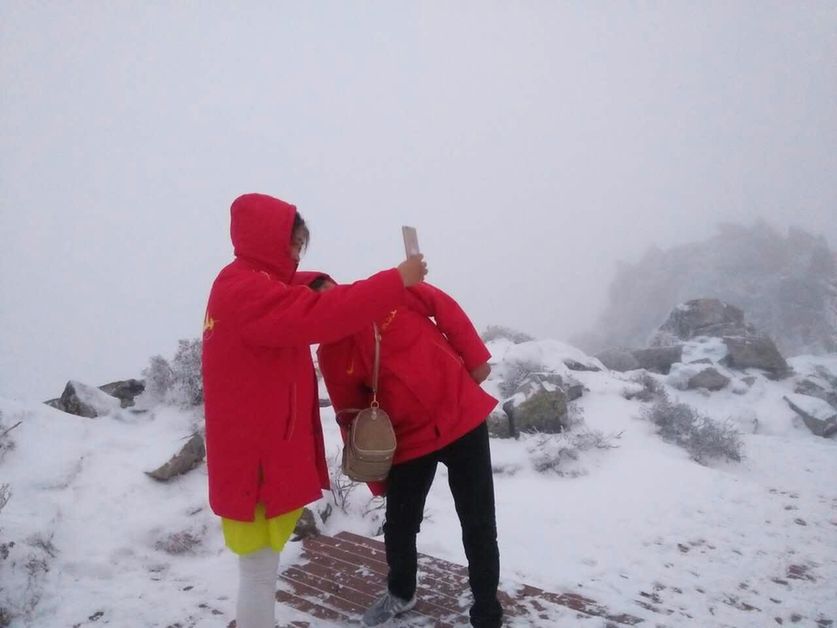 太白山上5月飄雪 游客稱夠驚喜