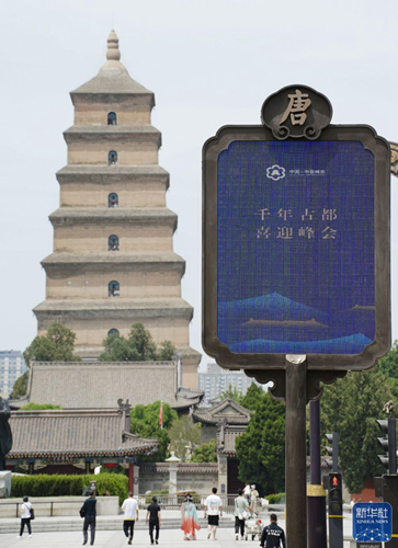 ↑西安大雁塔周邊展示的電子廣告牌(5月16日攝)。新華社記者 邵瑞 攝nwC安康新聞網