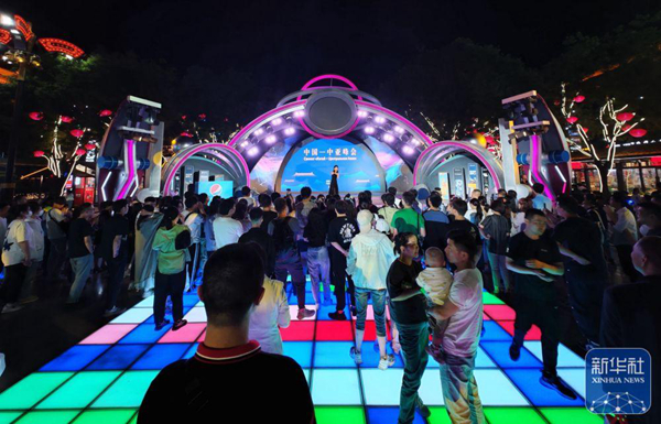 ↑5月15日,游客在西安市大唐不夜城游覽。新華社記者 張博文 攝nwC安康新聞網