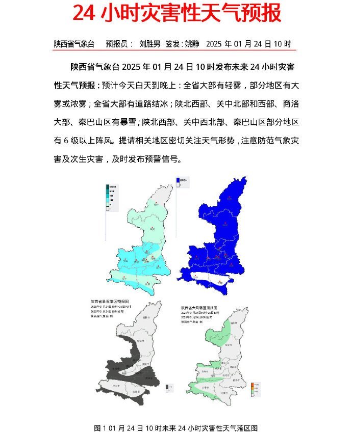 陜西省氣象臺2025年01月24日10時發布未來24小時災害性天氣預報:265安康新聞網