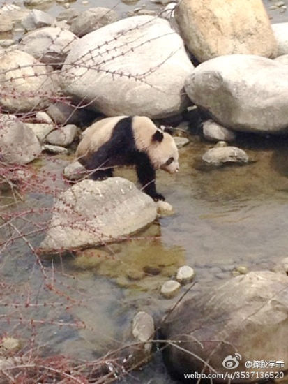大熊貓受到驚嚇徘徊在河邊。(圖片來源于網(wǎng)絡(luò))