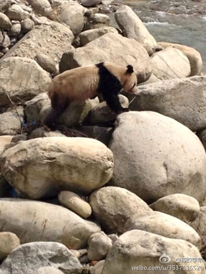 大熊貓受到驚嚇徘徊在河邊。(圖片來源于網絡)