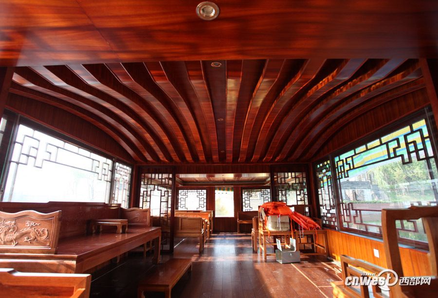 這艘仿古船長度五六米,可坐10來人。