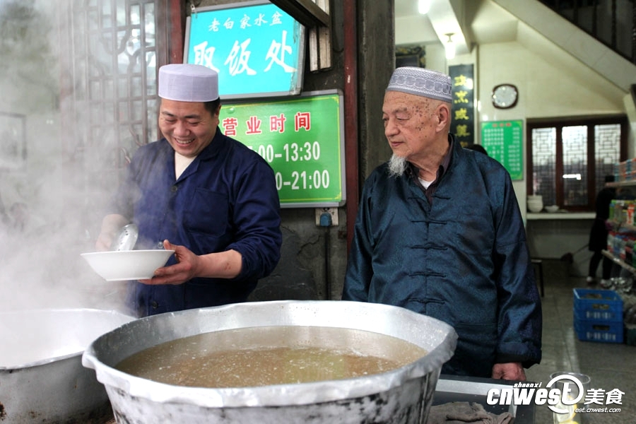 水盆羊肉的制作說來簡單,做好了,卻也不易。新鮮的牛羊肉要用淡鹽水浸泡,漂凈血水。以新鮮的羊骨熬湯,熬三四個小時后,再下肉,煮肉,牛肉要煮七個小時,羊肉要煮三個小時,而調料包中的桂皮、草果、大香、小香、丁香、良姜等等,全都要按老規矩來,幾斤肉配多少料,都有定數。在老白家,一百多年來,從未改變過。D8w安康新聞網