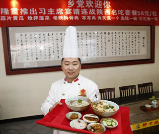 2014年2月19日,西安昆明路,豐慶宮推出習(xí)主席請(qǐng)連戰(zhàn)吃飯的套餐,四小份涼菜,肉夾饃、biang biang 面和羊肉泡饃。圖片來源:CFP視覺中國(guó)據(jù)報(bào)道,2月18日,中共中……