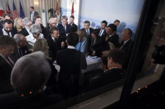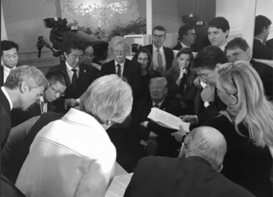 七國(guó)各有盤(pán)算,各說(shuō)各話(huà),互不相讓?zhuān)鳡?zhēng)暗斗。峰會(huì)結(jié)束不久,各國(guó)政府又開(kāi)啟了“斗圖”模式。同一場(chǎng)景,不同角度的照片,似乎告訴外界不同的故事。
