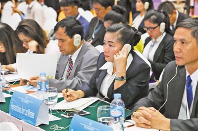 | 7月2日至3日,2018瀾滄江—湄公河合作媒體峰會(huì)在老撾首都萬象舉行,與會(huì)代表正在傾聽大會(huì)發(fā)言。本報(bào)記者 王斯雨攝 |
