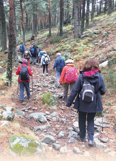 在西班牙瓜達(dá)拉馬國(guó)家公園徒步游覽的游客。