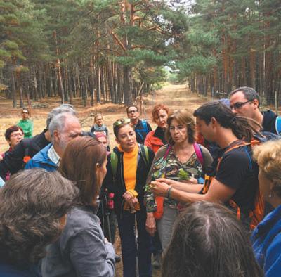 在西班牙瓜達(dá)拉馬國(guó)家公園,導(dǎo)游安赫爾不時(shí)停下腳步,為游客講解沿途遇到的各種動(dòng)植物的種類、特性等。