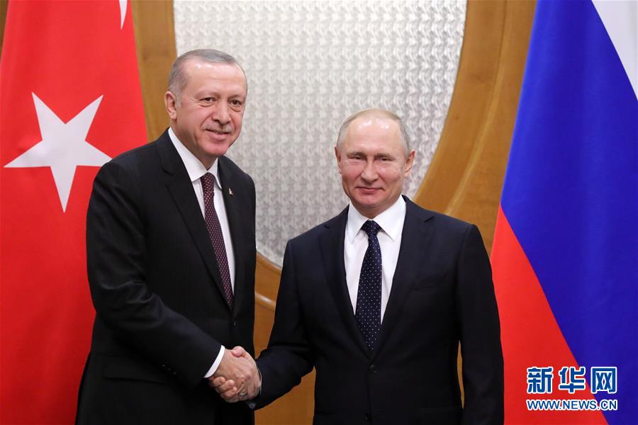 2月14日,在俄羅斯索契,俄羅斯總統普京(右)會見土耳其總統埃爾多安。 新華社/衛星社
