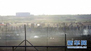 6月8日,巴勒斯坦人在加沙邊境舉行抗議游行。新華網記者陳文仙 攝 6月8日,約一萬名巴勒斯坦人在加沙地帶邊境的5處地方繼續舉行“回歸大游行”……