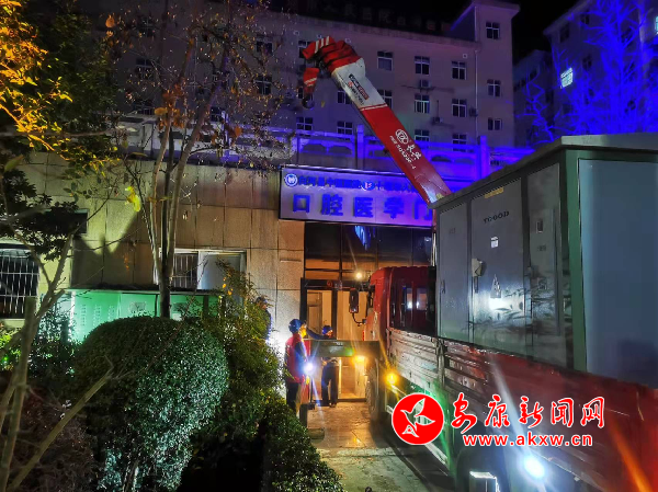 國網白河縣供電公司立即組織人員前往醫院查看故障情況,發現醫院專變的變壓器因高負荷燒毀,需要更換變壓器。下午7時,工作人員一邊幫助醫院協調轉運變壓器設備,一邊緊急調用一臺50千瓦的發電車,并迅速為醫院進行電源接入,第一時間為醫院的核酸檢測點、疫苗冷藏室、急診等優先供電。