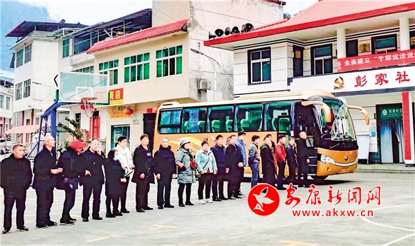 茅坪鎮彭家社區的能人李言貴組織帶領20多名群眾,包車前往內蒙古承包的項目工地務工。RnW安康新聞網