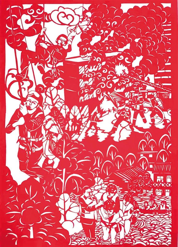 2022年,張莉的剪紙作品在“我與火焰藍”安康消防授旗訓詞三周年風采繪畫大賽中,榮獲“成人組優秀作品獎”,并被主辦方收藏。2023年張莉帶隊參加“德潤安康”安康市首屆校園科技藝術節,在剪紙區,小隊員們發揮巧思妙想,精心設計、細心折剪,只見刀尖一開一合,紅紙不斷翻轉,一幅幅栩栩如生、惟妙惟肖的作品就讓觀眾親眼見證了“刀光剪影”的神奇。隊員們嫻熟的技藝,精美的作品迅速吸引了許多人駐足參觀。