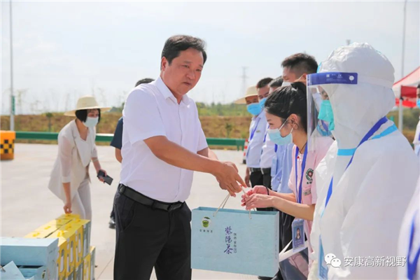 7月14日,市委常委、安康高新區黨工委書記羅武俠帶領相關部門負責人看望慰問防疫、水電、環衛等一線工作人員,為他們送去防暑降溫物品,向他們為城市發展和保障民生作出的辛勤貢獻給予高度肯定、表示衷心感謝。