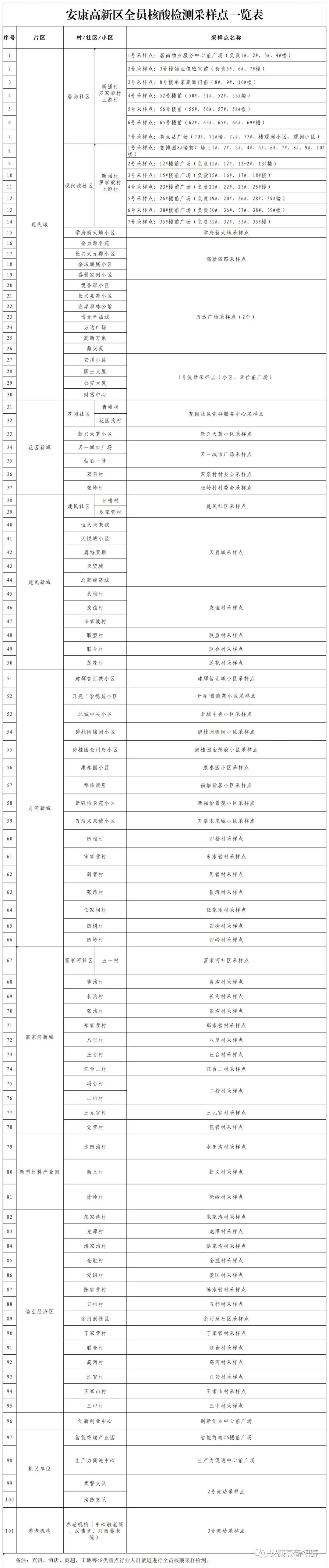 附件:安康高新區全員核酸檢測采樣點一覽表