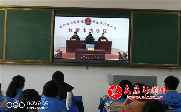 全校師生觀看了安康新聞網錄制的由初二(1)班和初二(5)班“紅領巾小隊員”聯袂出演的“模擬法庭”之《濱海市第一中學未成年高二學生王順友故意傷害同班同學李海安一案》的審理流程視頻。
