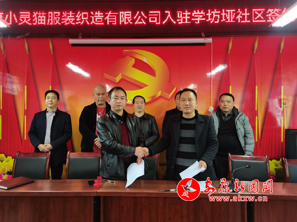 本網訊(記者 毛明星)12月2日,漢濱區流水鎮學坊埡社區與安康小靈貓服裝織造有限公司在社區會議室舉行了簽約儀式,成功簽訂安康小靈貓服裝織造項目落戶學坊埡。