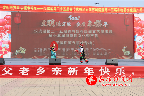 本網訊(通訊員 馬斌倩)2月3日,正月十三,漢濱區第二十五屆春節優秀民間文藝展演暨第十五屆非物質文化遺產節老城街道專場在金州廣場熱鬧上演。