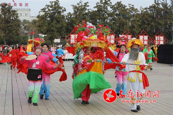 在金州廣場,身著各色演出服裝的演出隊伍早早就來到了現場為表演做準備,隨著一聲鑼鼓敲響,開場舞蹈《盛世歡歌》拉開活動序幕,花鼓表演唱《花為媒》、女聲合唱《火火的中國》、少兒舞蹈《百花舞》、戲曲聯唱《新春納福唱二黃》、漢調二黃歌舞《非遺賀新春》等節目陸續上演,營造起了濃濃的節日氛圍。演員們踏著喜慶的鼓點,和著歡快的節拍舞動起來,現場彩龍飛舞,雄獅翻騰,盡顯傳統民俗文化魅力。市民們大飽眼福,紛紛用鏡頭記錄下了各種精彩瞬間。