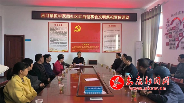 “清明節(jié)是祭奠先人、緬懷逝者、寄托哀思的日子,我們要抓住這個重點時間節(jié)點,通過持續(xù)的宣傳引導和政策解讀,推動移風易俗、文明祭掃理念深入人心。”理事會組織社區(qū)干部、部分黨員群眾代表學習了《紅白理事會章程》,宣讀了《2024年清明節(jié)文明祭掃倡議書》,安排部署了當前森林防火工作,號召大家遵守社會公德,用綠色、健康、簡約的祭掃方式表達對逝去親人的思念之情,減少集中出行發(fā)生交通堵塞、焚燒紙錢造成火災隱患情況發(fā)生。
