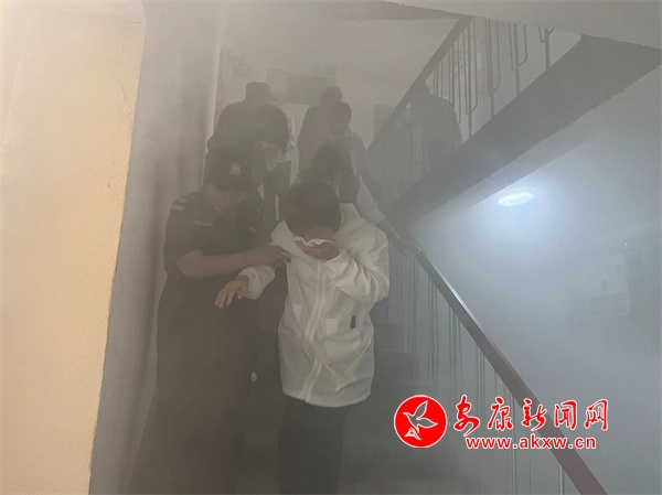 演練活動模擬不明原因導致該小區一住戶家著火,情況緊急,需要立即疏散該樓層的所有人員。在演練過程中,一系列緊張而有序的場景依次呈現。首先,在演練樓層釋放煙霧,營造出逼真的火災場景。緊接著,消防車迅速開進小區,消防人員利用擔架上樓,成功救援模擬受傷人員,并有條不紊地疏散了樓層內被困的人員。在一樓,醫護人員嚴陣以待,隨時準備對受傷人員進行緊急救治。