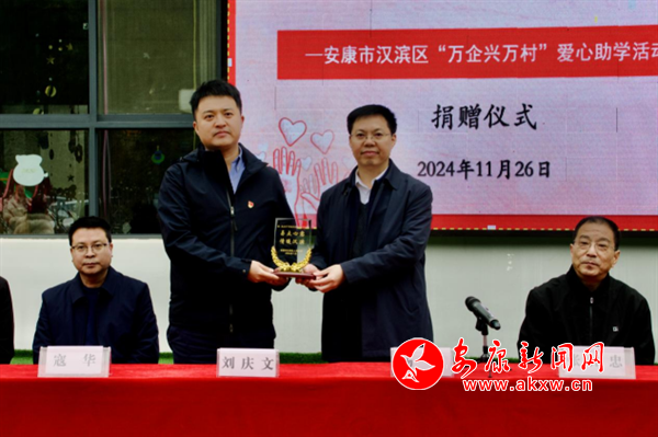 漢濱區(qū)向愛心企業(yè)贈(zèng)送紀(jì)念品 甘超/圖