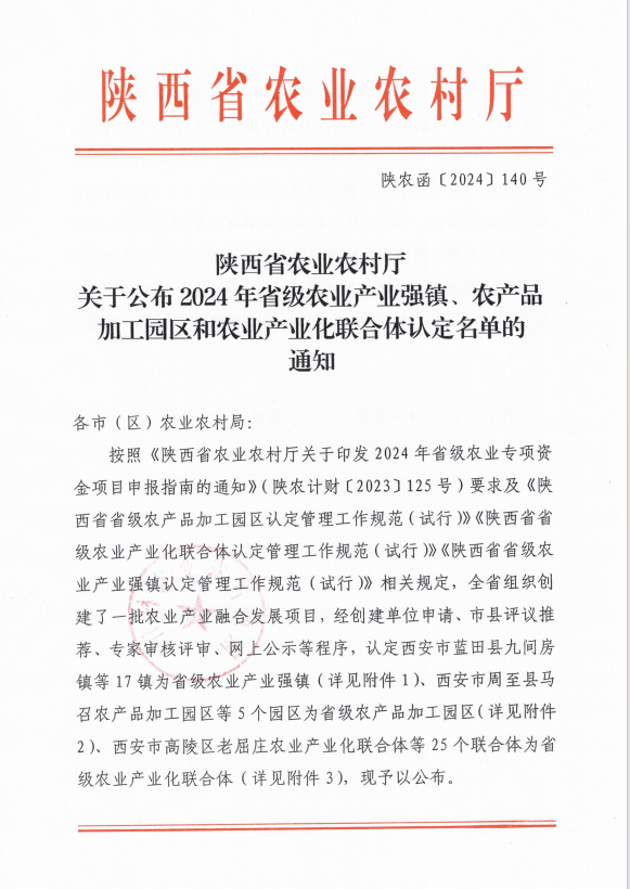 3月4日,陜西省農業農村廳公布2024年省級農業產業強鎮認定名單。其中我市
