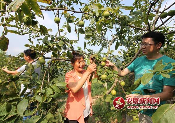 安康新聞網訊 (記者 王擁 通訊員 晁起攝)8月23日,在漢濱區大河鎮大興村,鎮干部和村民正在采摘成熟的核桃。今年該區有16萬畝核桃喜獲豐收,預計產量達7000萬……