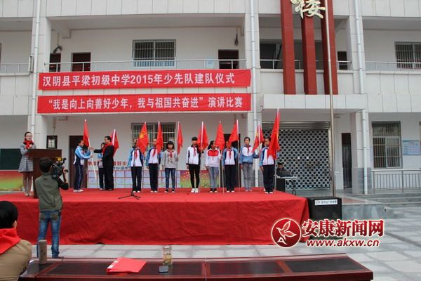 安康新聞網訊 (通訊員 林愛銘) 10月13日上午,伴隨著出旗音樂的響起,平梁初中在教學樓前拉開了“平梁初中2015年少先隊建隊儀式”的序幕。共青團漢陰縣委副書記張歡,教體局工會主席陳文寶應邀出席了建隊儀式。