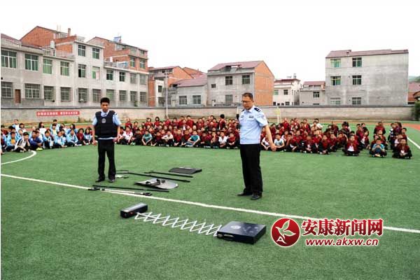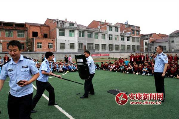 在活動(dòng)過(guò)程中,該所副所長(zhǎng)陳小兵先進(jìn)行了法律知識(shí)講座。講座中,陳所長(zhǎng)針對(duì)青少年犯罪的性質(zhì)、特點(diǎn)、根源,結(jié)合青少年的生理、心理特征,以生動(dòng)的事例,詳實(shí)的資料,通俗的語(yǔ)言,解讀了一個(gè)個(gè)觸目驚心的青少年犯罪案例,給學(xué)生上了一堂生動(dòng)的法制教育課。緊接著公安民警又向師生們展示了催淚噴射器、警棍、鋼叉、阻車(chē)器等警用裝備并模擬在遇到壞人時(shí)應(yīng)如何正確使用這些警用裝備以便最迅速、有效地將壞人制服,師生們聽(tīng)得聚精會(huì)神,博得了師生的陣陣掌聲。
