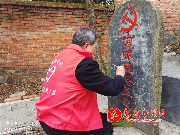 活動現場,該鎮10余名書法志愿者們向烈士鞠躬后,便小心翼翼地把墓碑上面的灰塵刷去,開始嚴肅認真地一筆一劃為烈士墓碑描摹碑文。每一筆,都刻畫了志愿者們對先烈們的沉痛追思;每一畫,都描摹著對新生活的無限感激。經過3個多小時的努力,40余座革命烈士墓碑的字跡煥然一新,在陽光的照耀下,顯得格外清新醒目,志愿者們露出了欣慰的表情。RdF安康新聞網