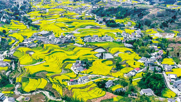 春分時節,漢陰縣迎來了一年中最富詩意的季節,春日的暖陽灑向大地,鳳堰古梯田油菜花海如金毯鋪展,櫻花、李花、梨花點綴其間,白墻黛瓦的村落與青山綠水相映成……