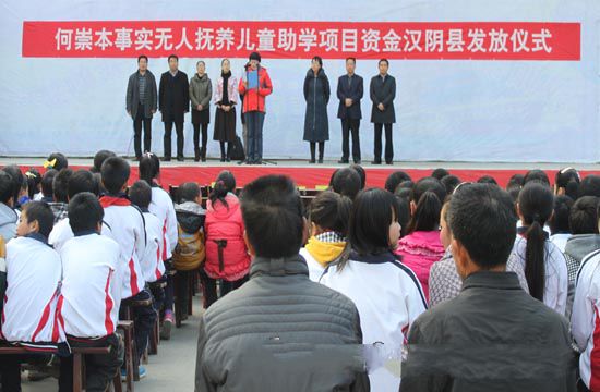 12月12日,何崇本事實(shí)無(wú)人撫養(yǎng)兒童助學(xué)項(xiàng)目資金漢陰縣發(fā)放儀式,在漢陽(yáng)鎮(zhèn)中心小學(xué)隆重舉行。省婦女兒童基金會(huì)秘書長(zhǎng)孫磊一行、縣委副書記劉飛霞、縣委常委組織部……