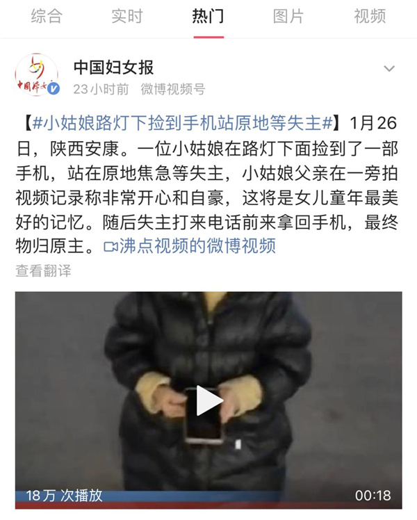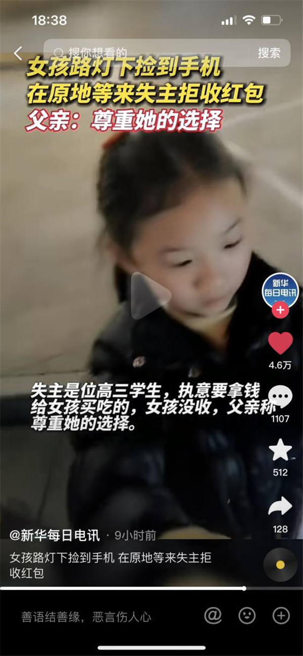 1月28日下午,#女孩撿手機站原地等失主##小姑娘路燈下撿到手機站原地等失主#話題沖上了抖音熱門、微博熱門,廣大網友紛紛點贊。LBN安康新聞網