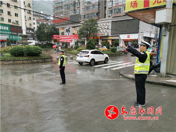 由于連續強降雨天氣,轄區部分路段通行壓力大。為確保群眾出行安全,預防因降雨天氣出現的大面積、長時間的擁堵情況,該隊針對轄區道路路況復雜、易堵等不同狀況,合理安排,快速出動,加派巡邏警力,在重要路口、路段、學校門前加強指揮疏導,合理引導車輛分流,指揮車輛安全通行。并利用開啟警示燈、喊話器喊話等方式提醒過往車輛減速慢行,保持安全車距,注意安全,最大限度確保惡劣天氣下道路交通安全暢通。