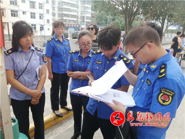 “大娘,您好!這個十字路旁不能擺攤,會影響行人通行,您可以到臨時過渡市場進行售賣,我們幫您把物品搬運到臨時過渡市場吧。”這是執法隊員在迎賓大道柔性執法的一幕。