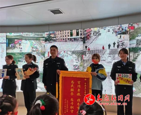 整個活動中,小朋友們認真聽講、積極舉手發言,紛紛表示學到了很多東西,和老師們一起將自己精心準備的手工畫、鮮花和寫有“言傳身教,攜手育人、為民服務、忠于職守”的錦旗送給110警察蜀黍、阿姨表示深深的敬意和感謝。Spu安康新聞網