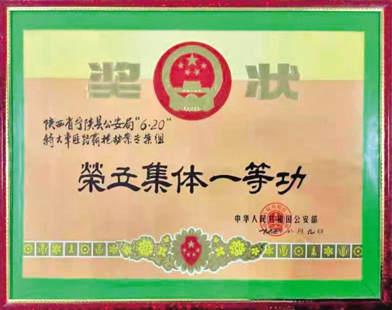 和往常一樣,我正和管理檔案的陳姨一起整理資料,忽然被眼前一塊榮立集體一等功的獎狀吸引,仔細查看,發現上面的詳細內容是:陜西省寧陜縣公安局“6.20”特大車匪路霸搶劫案專案組榮立集體一等功,落款是中華人民共和國公安部,時間是1995年8月9日。V62安康新聞網