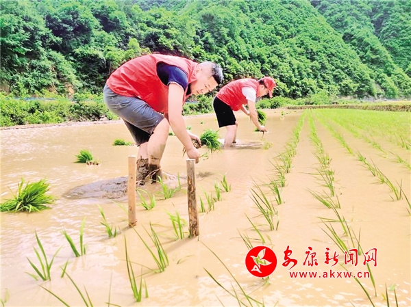 本網訊(通訊員 陳陽軍)農忙時節不等人。不久前,地處秦嶺腹地的寧陜縣龍王鎮棋盤村,有一群人,他們身穿“紅馬甲”搶抓好時節移栽秧苗,在水田里來回穿梭,幫助村民把一株株秧苗整齊有序地插入水田里,在藍天白云的映襯下,田間地頭呈現出一幅忙碌的夏耕畫卷。ZZK安康新聞網
