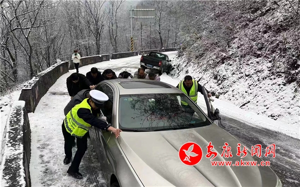救援期間,執勤民警、輔警冒著嚴寒,克服困難,一邊救援一邊引導過往車輛及時避險、安全行駛,有效防止了二次事故的發生。在疏通出安全道路后,又與公路段養護工作人員向被困車輛鋪灑防滑沙,歷時4個多小時的救援,被困擁堵車輛全部救援成功。臨行前,車輛駕駛員對大家的及時援助一再表示由衷的感謝,執勤民警再次叮囑駕駛員一定要減速慢行,謹慎駕駛,加強道路交通安全防范意識,面對雨雪惡劣天氣,一定要提前備好防滑鏈,切勿存在僥幸心理。