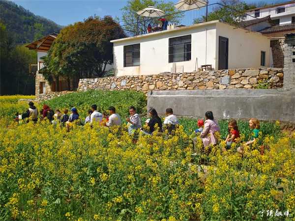 漁灣村位于寧陜縣城以南,距離縣城約11公里。這里依山傍水,景色秀美,已建成鹿柴山集精品民宿、稻田小火車等項目,并打造出朱鹮保育稻田、陜南鄉村田園等自然人文景致,有著豐富的生態資源和深厚的文化底蘊。清明時節,正是油菜花盛開的季節,田間地頭金黃一片,吸引了眾多游客前來觀賞。