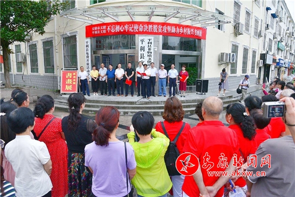 本網訊(通訊員 王韜)8月20日早上8時,安康市“不忘初心、牢記使命,決勝脫貧攻堅、助力鄉村振興”書畫展在平利女媧文化廣場開展。