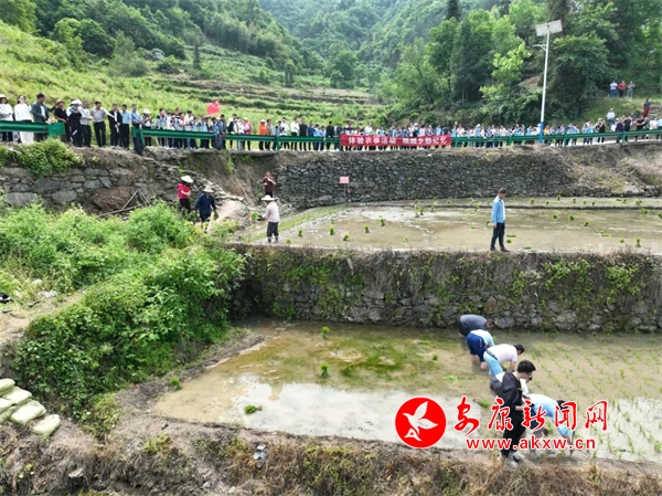 眾多游人及附近村民趕來體驗手工插秧,參加別開生面的田間趣味比賽,感受美麗鄉村的建設成果和傳統農事魅力。上午11時許,隨著裁判一聲令下,插秧比賽正式拉開帷幕,稻田頓時變為賽場,來自全鎮10個村的插秧選手們,卷起褲管,擼起袖子,赤腳走進稻田,一手持秧苗,一手飛快地分苗、插秧,大家你追我趕,紛紛拿出看家本領一展高下,觀賽者們加油助威,現場一派熱火朝天的勞動場景。
