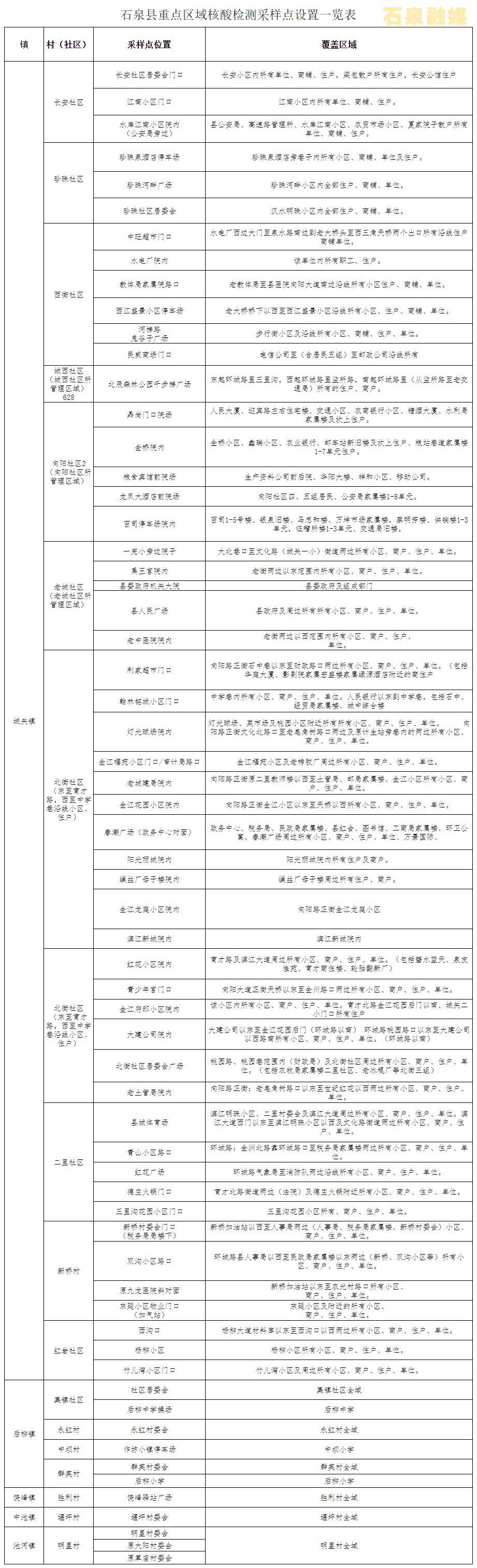 附件:石泉縣重點(diǎn)區(qū)域核酸檢測采樣點(diǎn)一覽表