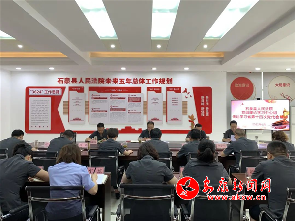 會議要求,要學深悟透抓好宣傳,結合學習貫徹習近平總書記來陜考察重要講話重要指示精神、黨的十九屆六中全會精神,把學習好、宣傳好、貫徹好省第十四次黨代會精神作為當前和今后一個時期的重要任務,掀起班子成員帶頭學、中層干部主動學、全體干警自覺學的學習熱潮。要學用結合謀好發展,認真對照省黨代會作出的重大部署,結合法院工作實際,完善工作思路,細化工作舉措,找準切入點、瞄準突破口,對標對表縣第十六次黨代會和縣委十六屆二次全會重點任務,推動省黨代會精神在石泉法院落地落實。要學有所行樹立形象,以此次黨代會精神為指引,持續強化紀律作風建設,以“為群眾辦實事示范法院”、“楓橋式人民法庭”創建活動為契機,不斷提升人民群眾司法獲得感和滿意度,以優異成績迎接黨的二十大勝利召開。