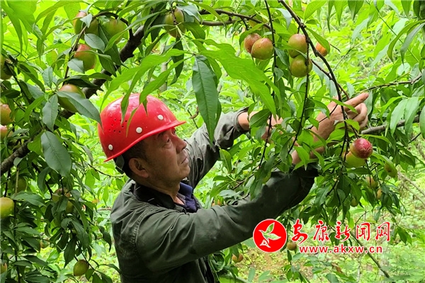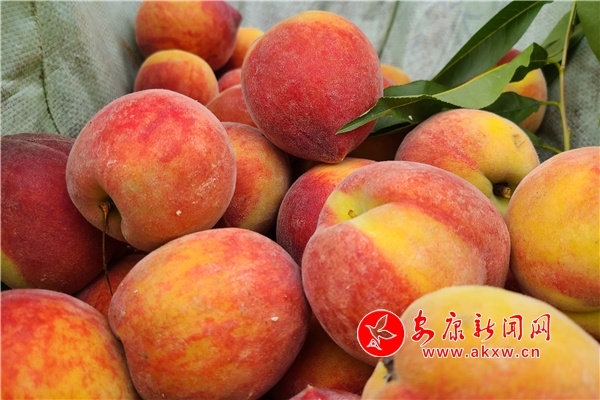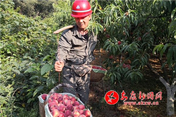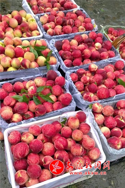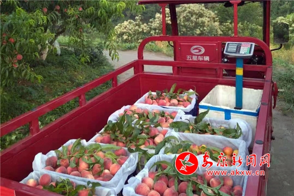 產業大戶許國棟的果園里栽種有蜜桃、黃桃、油桃、蟠桃、冬桃等七八個品種桃樹。蜜桃和黃桃現已大量上市。果園里工人們正加緊采收桃子,分揀裝框,一部分運往附近超市,一部分通過網絡訂單發往全國各地。高峰時期,許國棟果園一天售出的桃子達4000余斤。