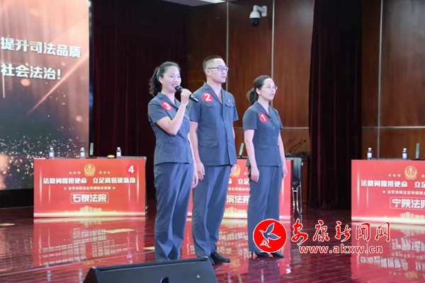 此次競賽活動分為初賽和決賽兩個階段,在7月1日舉行的初賽中,市中級人民法院、市各縣區(qū)法院共計11支代表隊參加初賽筆試,經(jīng)過初賽,共有6支代表隊進入決賽。決賽圍繞黨史知識、政治理論、法律業(yè)務技能等相關(guān)內(nèi)容,通過必答題、搶答題、風險題三個環(huán)節(jié)展開激烈角逐。石泉法院鐘家艷、李仕章、梁磊三名同志沉著應戰(zhàn)、默契配合,以總分220分的成績榮獲第二名。